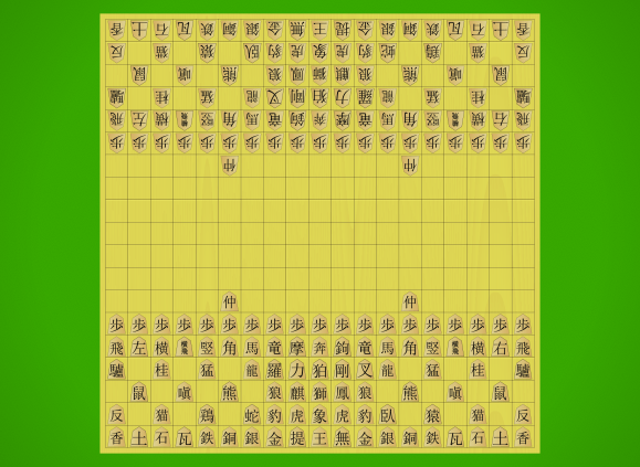 Maka Dai Dai Shogi initial position with traditional kanji pieces
