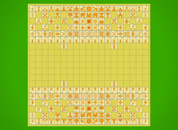 Maka Dai Dai Shogi initial position with diagrammatic pieces