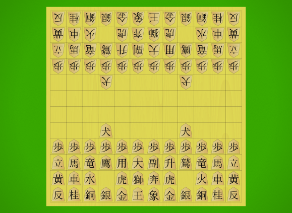 Makyou Shogi initial position with traditional kanji pieces