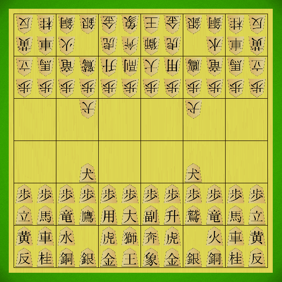 Sample game of Makyou Shogi (173 moves, Wikipedia/CVP ruleset)