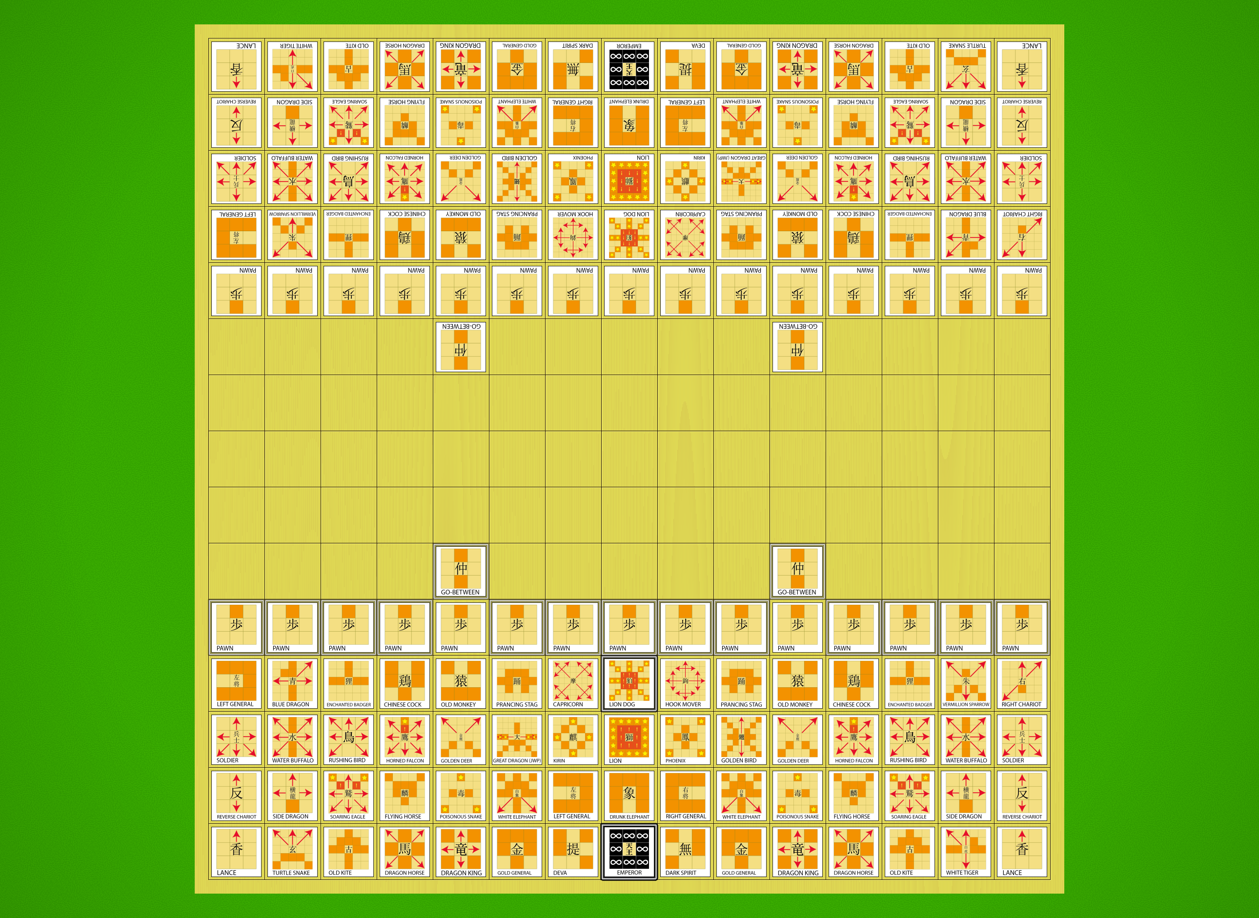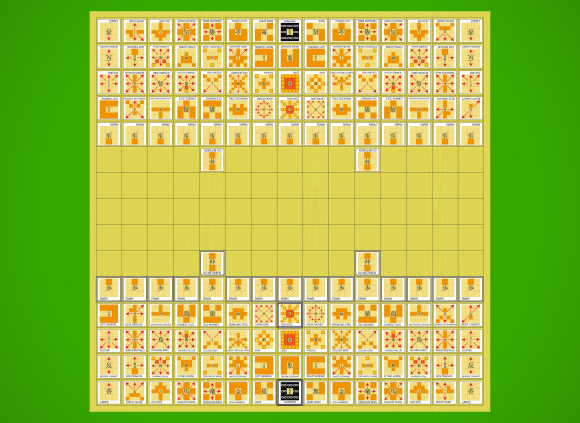 Mini Tai Shogi initial position, with diagrammatic pieces.