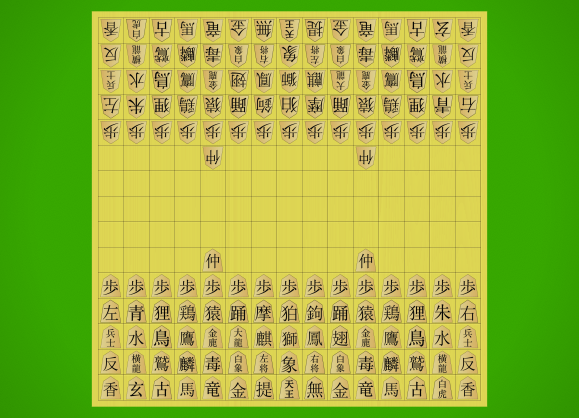 Mini Tai Shogi initial position with traditional kanji pieces