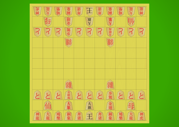 Starting array with kanji pieces flipped to show their promoted sides
