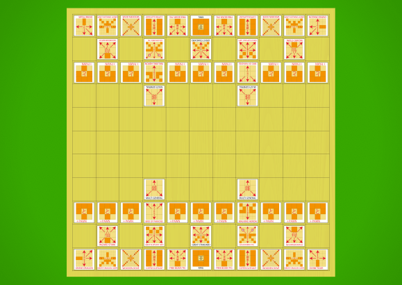 Starting array with diagrammatic pieces flipped to show their promoted sides