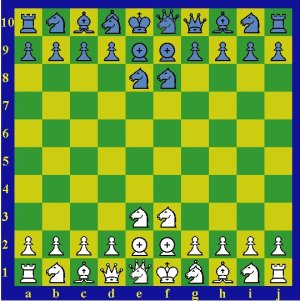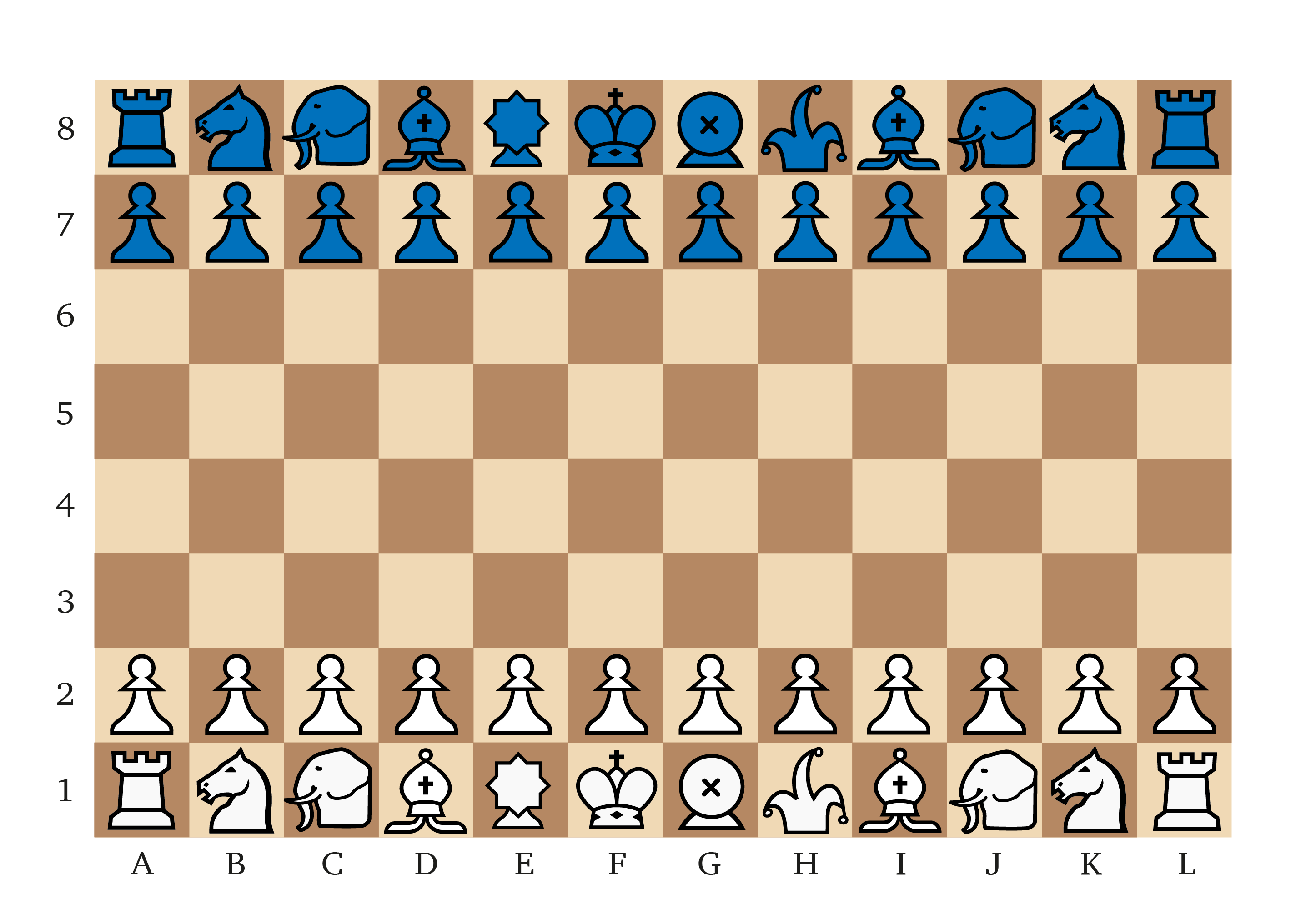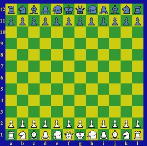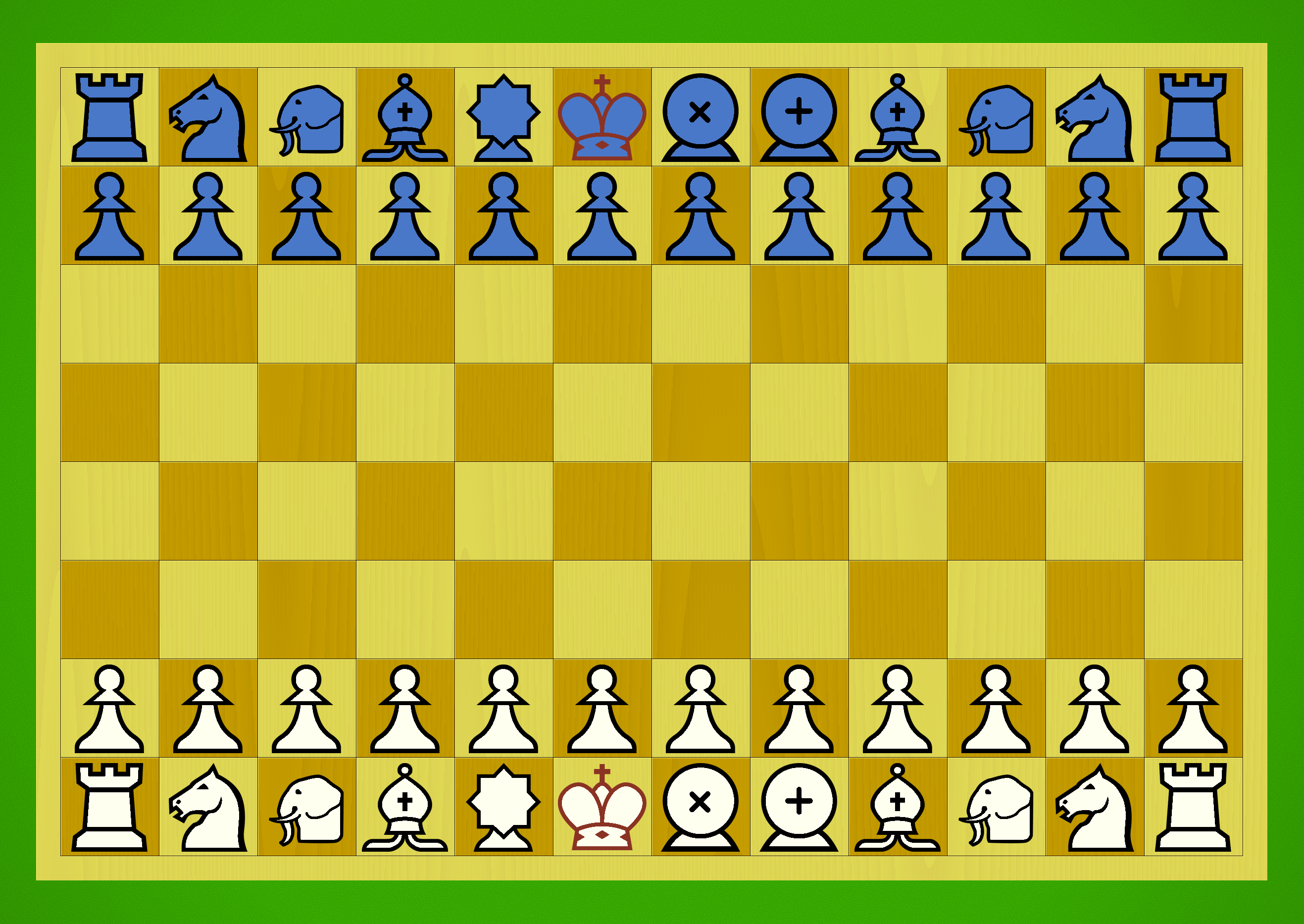 As large variants go, the setup here is pretty simple: all the standard Chess pieces are here, plus an extra Queen, two Marshals, two Cardinals, and an Amazon (Queen + Knight). The presence of all these powerful pieces generates a game of intense tactics; most of the pieces on the board are incredibly mobile, and the Amazon can actually checkmate the enemy King completely on its own, without the help of any other piece!