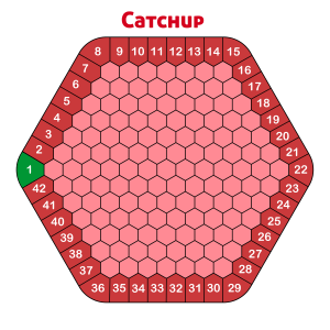 Catchup is a wonderful game by Nick Bentley that I’ve mentioned briefly before, because the scoring system inspired my choice of scoring system for Permute. This is a game I’ll definitely cover in the future, as it’s incredibly easy to learn, yet within moments of starting to play you’ll realise the core strategic dilemmas at the heart of the game. Catchup is a really dynamic and exciting game, and personally I think Catchup is Nick’s best design by far.
