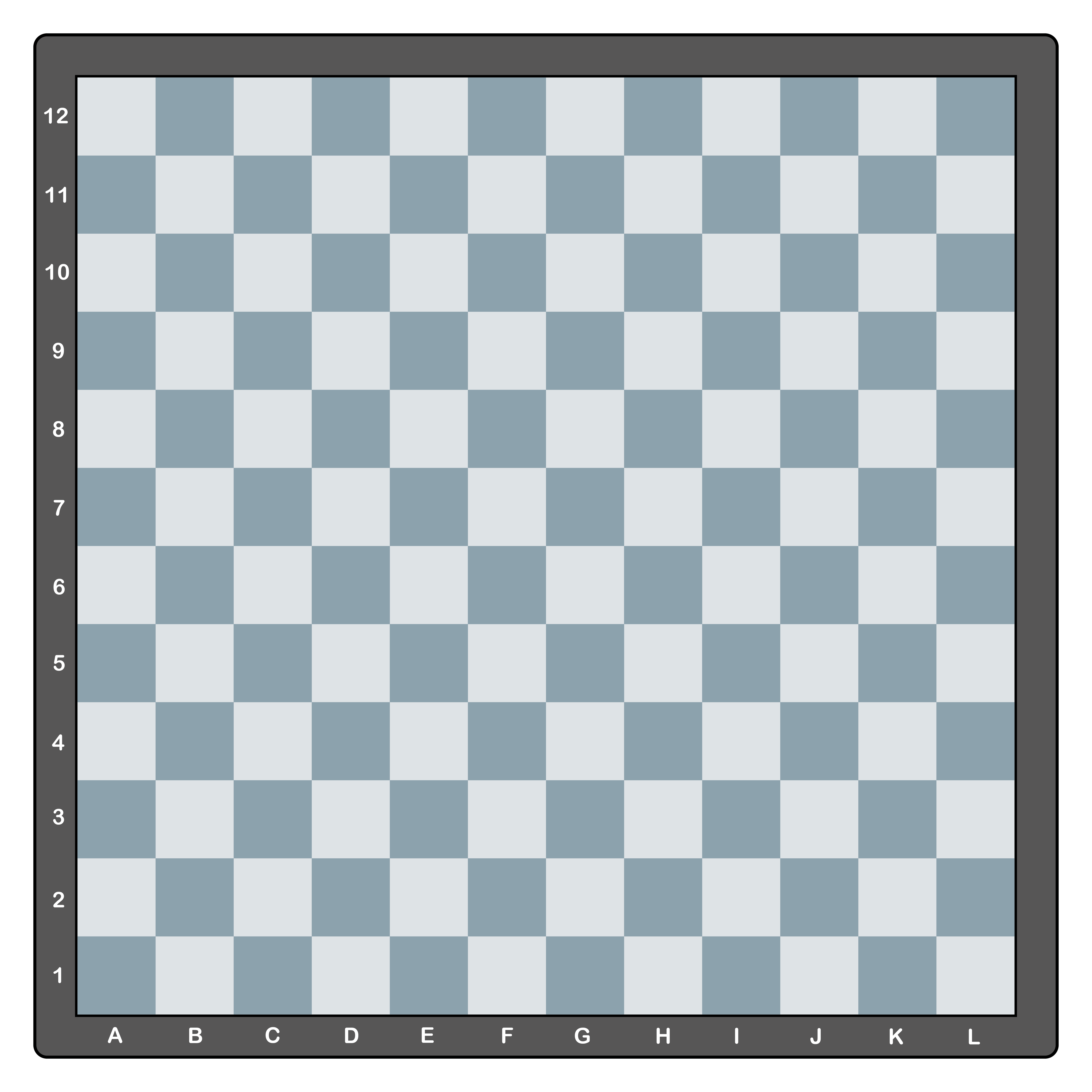These are simply enlarged chessboards — 10×10 squares and 12×12 — that I plan to print on mats and use to play large variants of Chess. Many Chess fans over the years have attempted to transport the magic of the Royal Game to larger boards, and thankfully a number of them succeeded in creating some very enjoyable variants that feel like Chess, but still have a unique personality. I’m planning to write an article in the future that will cover a bunch of large Chess variants and give you some detailed recommendations; for now, here’s a few worth checking out on both board sizes, should you fancy giving them a go.