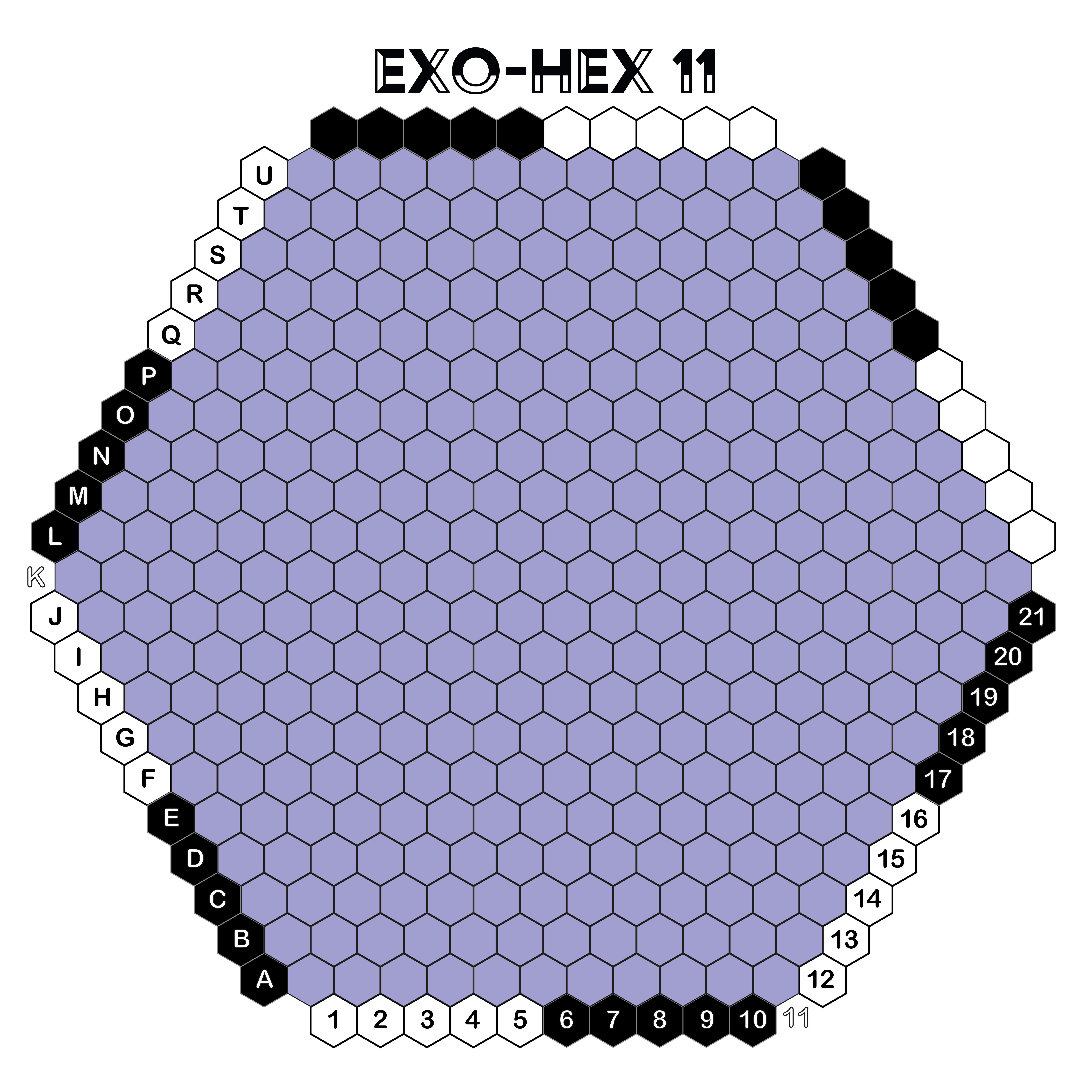 Why they’re great: Exo-Hex is essentially a distillation of Side Stitch into a simpler form, playable with a standard hexhex board with some extra stones around the edges. The more straightforward rules and minimalistic look are great for beginners who may not yet be ready to graduate to Side Stitch and its endless variety of possible playing surfaces. Exo-Hex is also much easier to construct with components you may already have around, so it’s more straightforward to pick up and play.