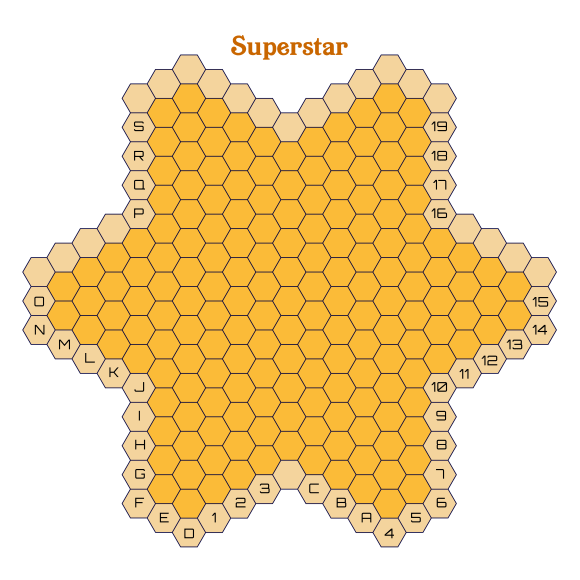 *Star is another game I’ve covered before, but at the time I was a bit confused about the rules and had yet to try it. Boards are also hard to obtain, as they can only be ordered from America, and shipping from America now is ludicrously expensive, so I made two variations of the *Star board to print myself. Superstar is a predecessor of Starweb, a fantastic connection game from Christian Freeling; Christian says Superstar is no good now and fully superseded by Starweb, but he thinks lots of things are no good, so I wouldn’t take that to heart.