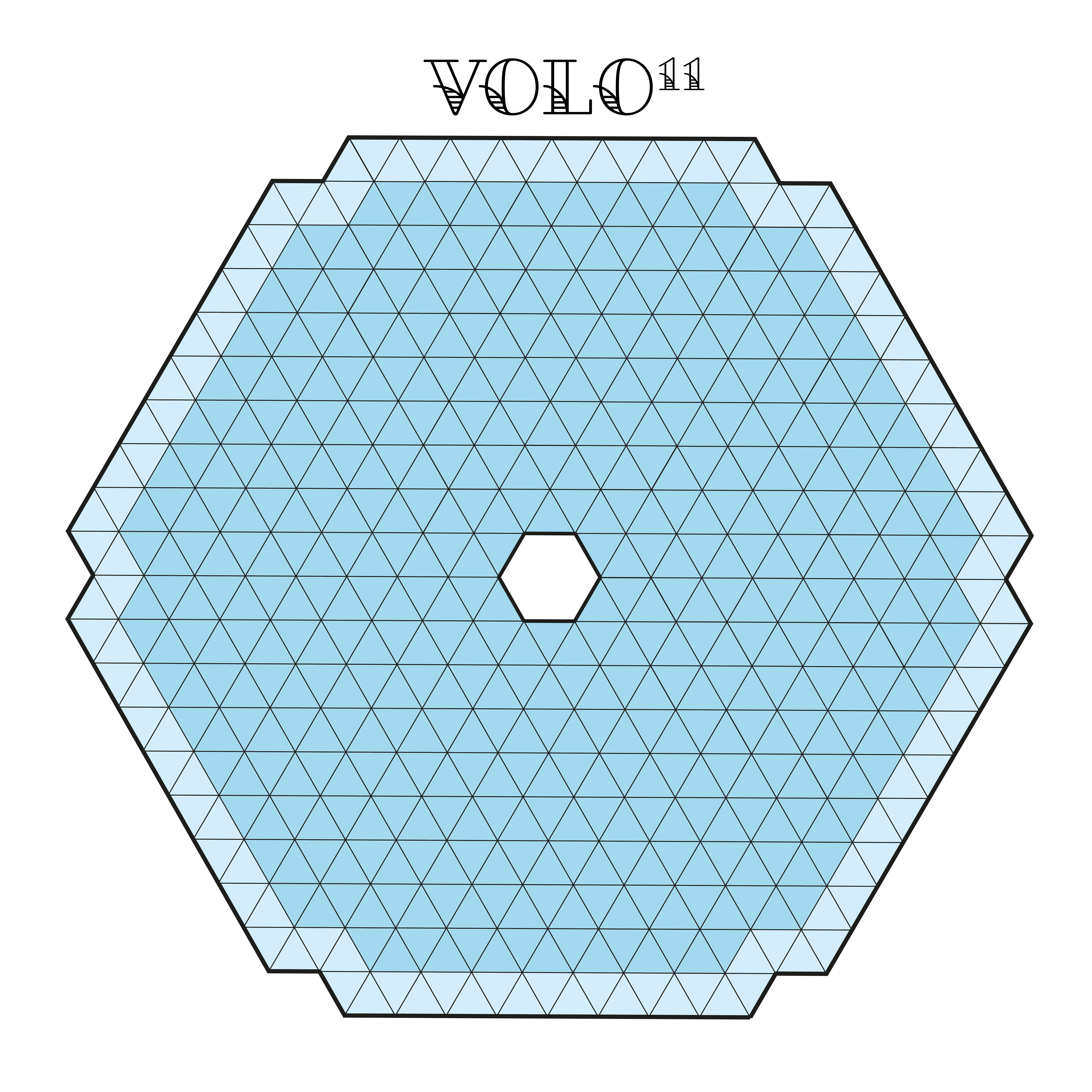 About the boards: The standard Volo board is a hexhex-7 board with corners and the center point removed. In the spirit of experimentation I’ve been playing with larger boards, so you can see above I’ve constructed hexhex-9 and hexhex-11 boards for more epic Volo games. On all the Volo boards you place your birds on the intersections, rather than within the triangular spaces.