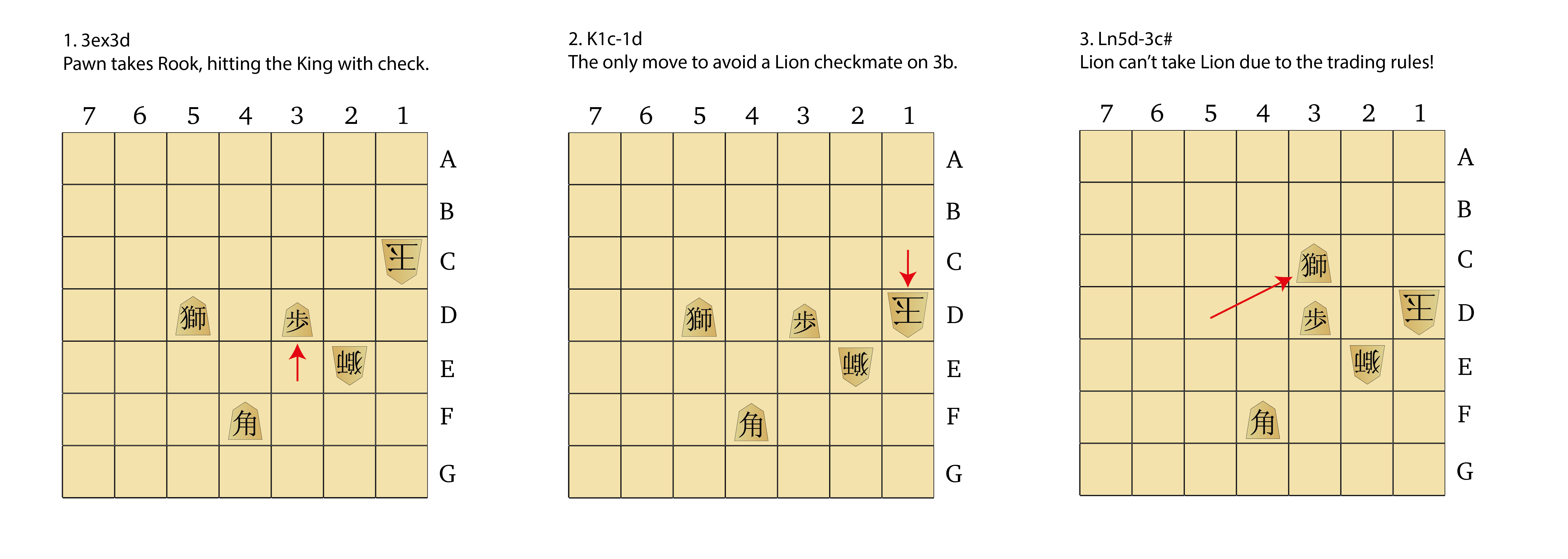 On the whole, the pieces in this game have unusual moves, and don’t fit cleanly into our pre-existing notions of what we might do with more typical Chess or Shogi pieces. I’ve found it enjoyable to try and understand the best use of these pieces, as each has a distinct personality and clear weaknesses that must be taken into account. Over time I hope to deepen my understanding of how to use these pieces effectively.