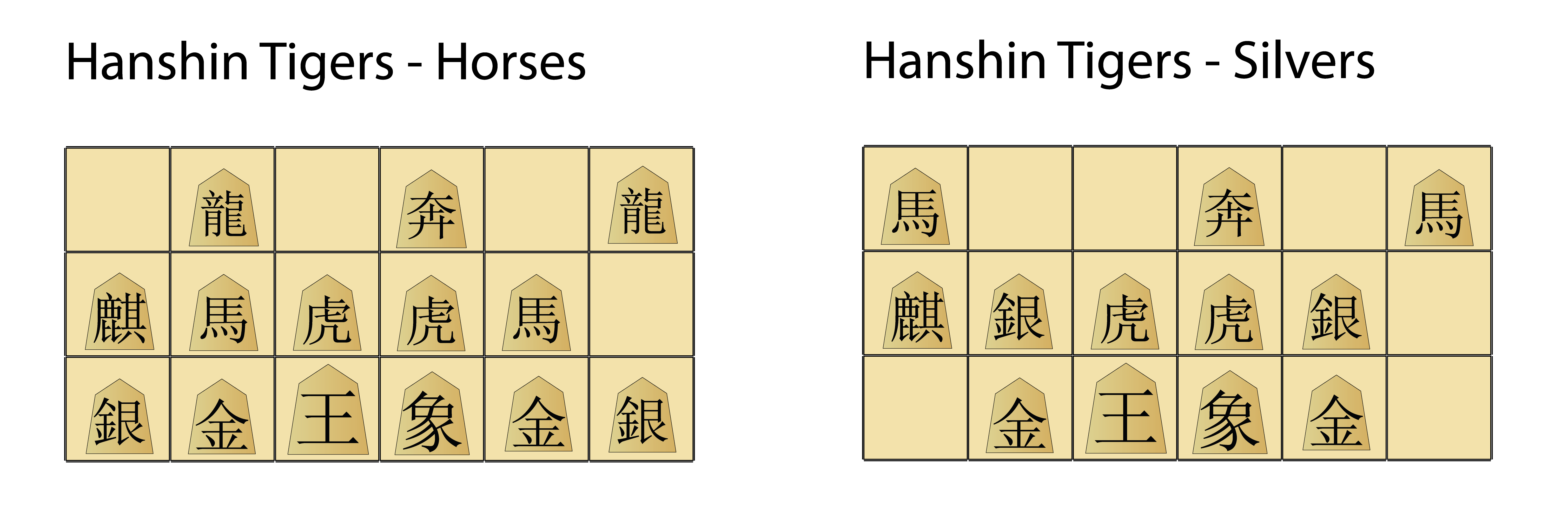 - The Phoenix, Kirin, Ferocious Leopard are everywhere in the large variants, but for me they mostly bring to mind Chu Shogi.