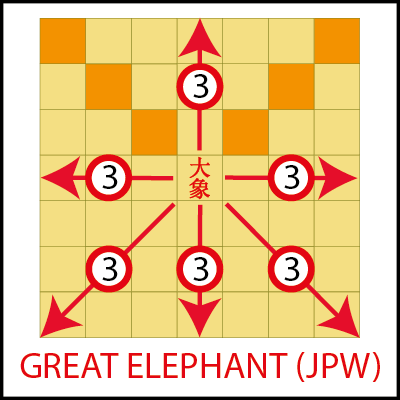 - The White Elephant and Fragrant Elephant come from Dai Dai Shogi, and their moves are vertically mirrored versions of each other.